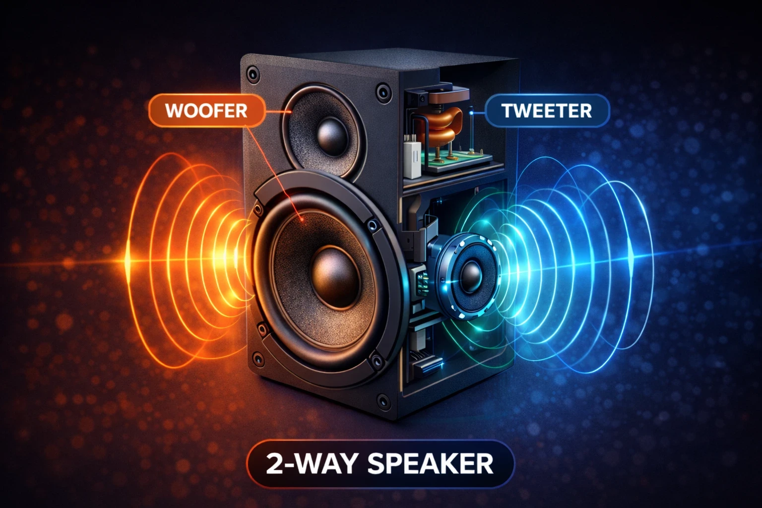 ووفر: ووفرها برای تولید فرکانس‌های پایین (باس) طراحی شده‌اند. آن‌ها معمولاً در محدوده فرکانسی 20 هرتز تا 2 کیلوهرتز عمل می‌کنند و مسئولیت تولید صدای عمیق و غنی را بر عهده دارند. ووفرها معمولاً از مواد خاصی ساخته می‌شوند که به کاهش اعوجاج و بهبود کیفیت صدا کمک می‌کند.